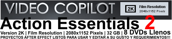 Pack Video Copilot ACTION ESSENTIAL 2 8 DVDs = $ 210 (envio SIN cargo a TODO el país) PRECIO PROMOCIONAL !!! ACLARACION: La foto es ilustrativa. Los 8 DVDs se entregan en sobres impresos completamente etiquetados con su correspondiente contenido. Para ///COMPRAR HAGA CLICK ACA/// En el supuesto caso que NO se habilite el link de arriba enviar un e-mail a fullpacksweb@gmail.com con los siguientes datos: Nombre y