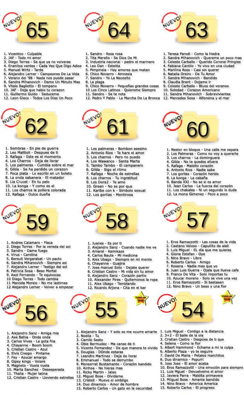 Los 65 Cds se entregan grabados en 8 DVDS (formato mpeg) en sobres.