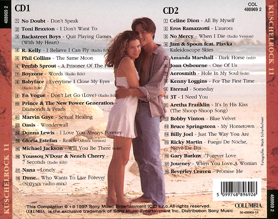 Rock 11 CD 1 01. No Doubt - Don't Speak 02. Toni Braxton - I Don't Want To 03. Backstreet Boys - Quit Playing Games (With My Heart) 04. R. Kelly - I Believe I Can Fly 05. Eric Clpton - Change the World 06. Paul McCartney - Yesterday 07. Boyzone - Words 08. Babyface - Every Time I Close My Eyes 09. En Vogue - Don't Let Go 10. Prince & New Power Generation - Diamonds & Pearls 11. The Cranberries - When You're Gone 12. Oasis - Wonderwall 13. Scorpions - White Dove 14. Gloria Estefan - Reach 15. Michael Jackson - Will You Be There 16. January feat. DJ Company - Wishing on the Same Star 17. Youssou N'Dour & Neneh Cherry - 7 Seconds 18. Spice Girls - 2 Become 1 19. Dune - Who Wants to Live Forever | |